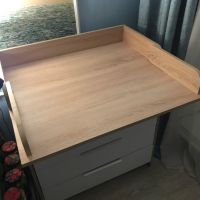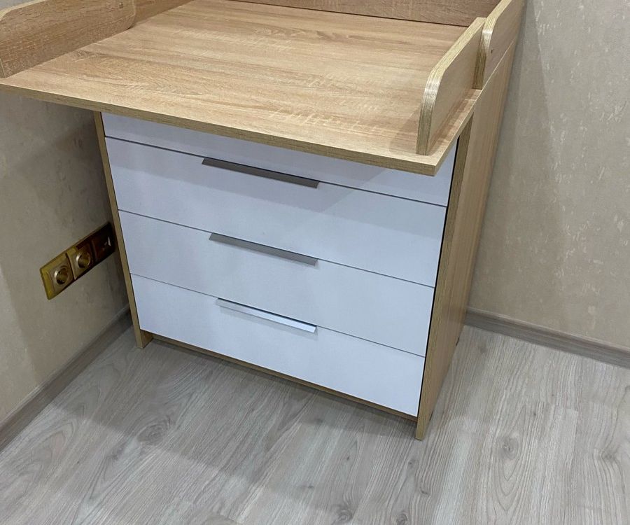 - внешний вид. Цвет дерева полностью вписался в интерьер. Понравились ручки на ящиках; - большой пеленальный столик. Он довольно широкий, механизм вроде крепкий. В крышке комода изначально отверстия под пеленальный столик не сквозные, поэтому можно использовать комод без столика. Чтобы закрепить столик, нужно просверлить отверстия.