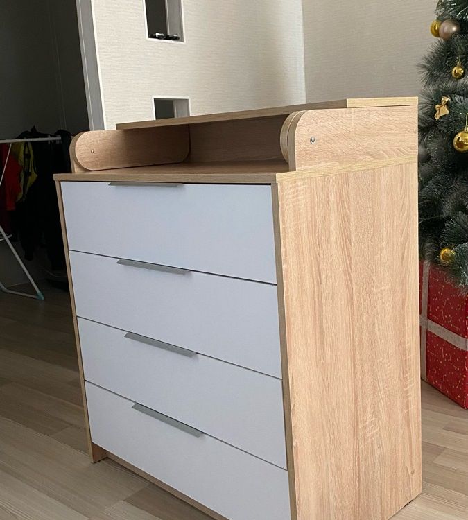 Хороший комод, заказали для малыша, но пока не установили пеленальную часть, в окружающую обстановку вписался отлично. В целом собирать было довольно непросто, потому что редко этим занимаемся. Но по инструкции все довольно понятно. На мой взгляд, маловато саморезов для фиксации ящиков и стенки комода, будем дополнительно докупать. Не могу сказать, что комод супер качественный и долговечный, но за свои деньги (<7000₽) это просто подарок. Рекомендую продавца и его товар.