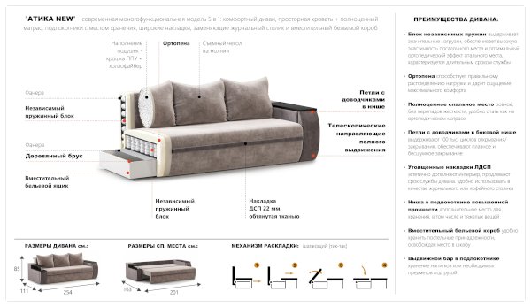 Диван Атика (Империал) - за 69 368 руб. в Ноябрьске. Купите на сайте mebelmarket-noyabrsk.ru или по телефону 8(800)505-30-63 уже сегодня! Уточнить наличие, комплектацию, актуальную цену можно бесплатно у менеджера ежедневно. Закажите Диван Атика (Империал) до конца акции! Доступна покупка в кредит, рассрочку. Доставим со склада или на заказ.