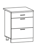 Глубина верхних шкафов указана без учета фасада, высота столов указана без учета столешницы