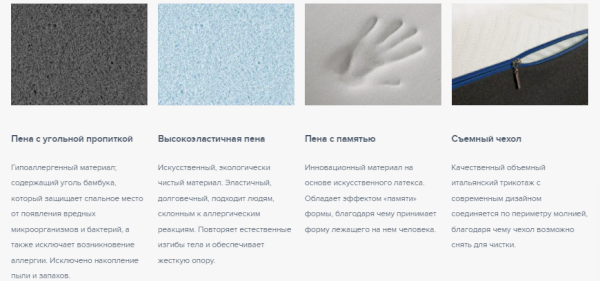 Матрас с памятью формы изготовлен на основе чередующихся слоев высокоэластичной пены и материала с эффектом памяти. Поддерживает тело в анатомически правильном положении, равномерно распределяет нагрузку на матрас, обеспечивает его износостойкость. Чехол матраса с памятью формы выполнен из комфортного трикотажа.