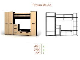 Стенка Мечта - прекрасное решение для гостиной. Сочетает в себе различные по функциональности модули, а декор из стекла добавляет контраст и оригинальность.