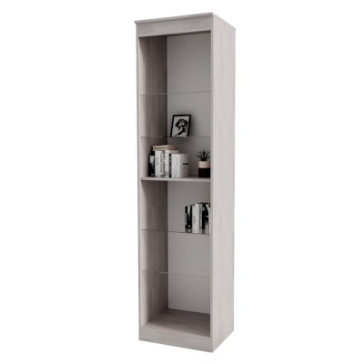Закрытый пенал Монако – практичный и стильный вариант для интерьера. Модель позволит разместить книги, сувениры, предметы декора или посуду. Изделие выполнено из ЛДСП цвета ясень белый, фасад дверцы имеет стеклянные вставки, что облегчает конструкцию. Пенал сможет вписаться в комнаты любого стиля.