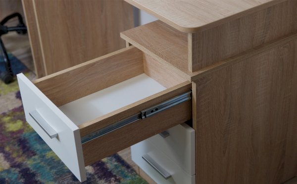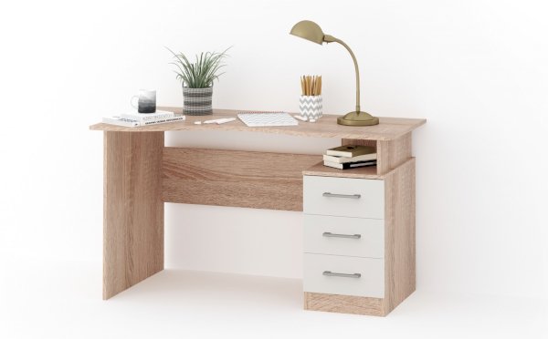 Стол письменный – удобное рабочее место для студента, школьника, отличное решение для кабинета с интерьером в скандинавском стиле. На широкой столешнице легко поместится монитор, клавиатура и документы, а в ящиках поместятся все письменные принадлежности. В столах системы Гарвард мягкие, удобные для опирающихся рук края, с кромкой в 2мм, а также, скруглённые углы столешницы. Корпус выполнен в теплом древесном цвете светлого дуба с приятной на ощупь фактурой, фасады - белые матовые. Нейтральные оттенки мебели позволяют легко вписаться уже в готовый интерьер.