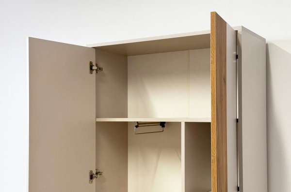 Особый шарм шкафу придает декоративный элемент цвета дуб крафт золотой на одной из дверей, добавляя нотку роскоши и уникальности.