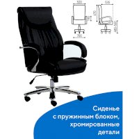 Плотная многослойная набивка, продуманная форма спинки, широкий подголовник, массивные подлокотники с мягкими накладками создают максимально комфортные условия для продуктивной работы.