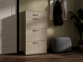 Тумба оснащенная тремя отделениями для обуви и одним выдвижным ящиком полного выдвижения. Она прекрасно подходит для современной обстановки.