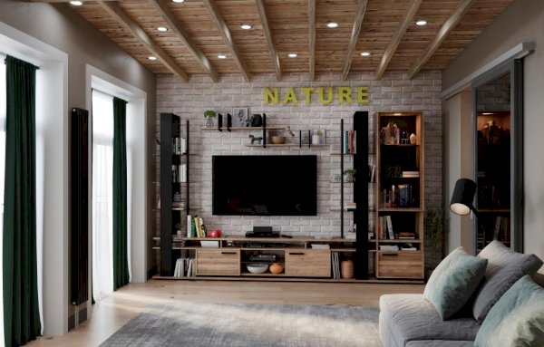 Изящный и стильный стеллаж с открытыми полками станет значимой интерьерной деталью гостиной. Комбинация стеклянных полок и элементов «под дерево» выглядит стильно и очень современно. Благодаря невидимым глазу креплениям создается впечатление, что стеклянные полки парят в воздухе. Но несмотря на кажущуюся легкость и воздушность, тонированное стекло выдерживает нагрузку до 5 кг, что позволит разместить на стеллаже комнатные растения или предметы декора. Регулируемые опоры слегка приподнимут стеллаж над полом, облегчая уборку, а также позволят компенсировать незначительные неровности пола.