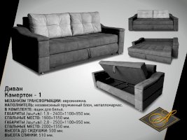 • Габариты: 2400х1100х950 мм - Размер спального места: 1900х1550 мм