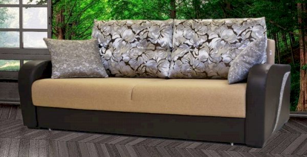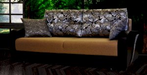 Именно эта модель была отмечена большинством посетителей как самый стильный и оригинальный дизайн. Необычная декоративная вставка на боковине делает этот диван ярким и запоминающимся, а механизм «еврокнижка» превращает диван в полноценную кровать. По желанию клиента диван комплектуется креслом «Сидней».
